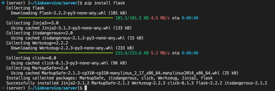 라이브러리를 모두 설치한 후 다시 한번 터미널에서 python3 server.py 을 실행한다.