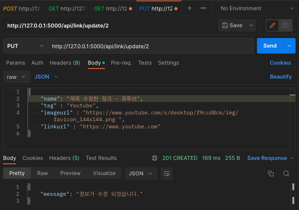 ☑︎ PUT /api/link/update/<int:id> - name을 수정해보자.