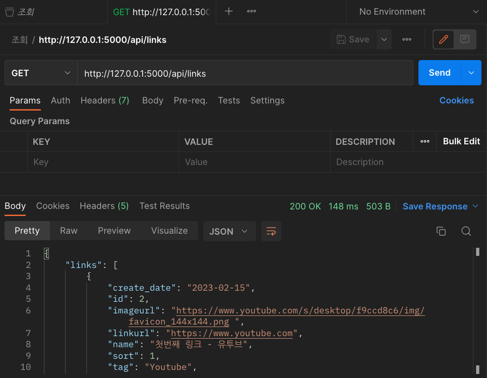 LINKS 테이블에 대한 CRUD API가 완성되었다.