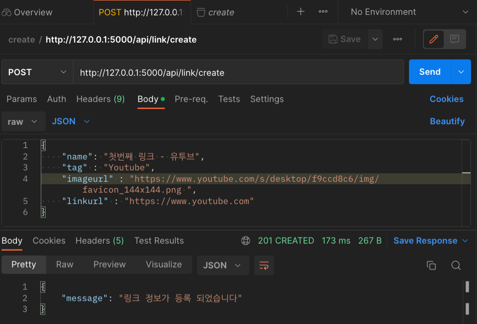 ☑︎ POST /api/link/create - 링크정보 등록